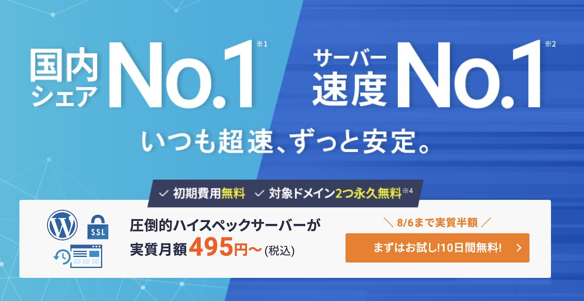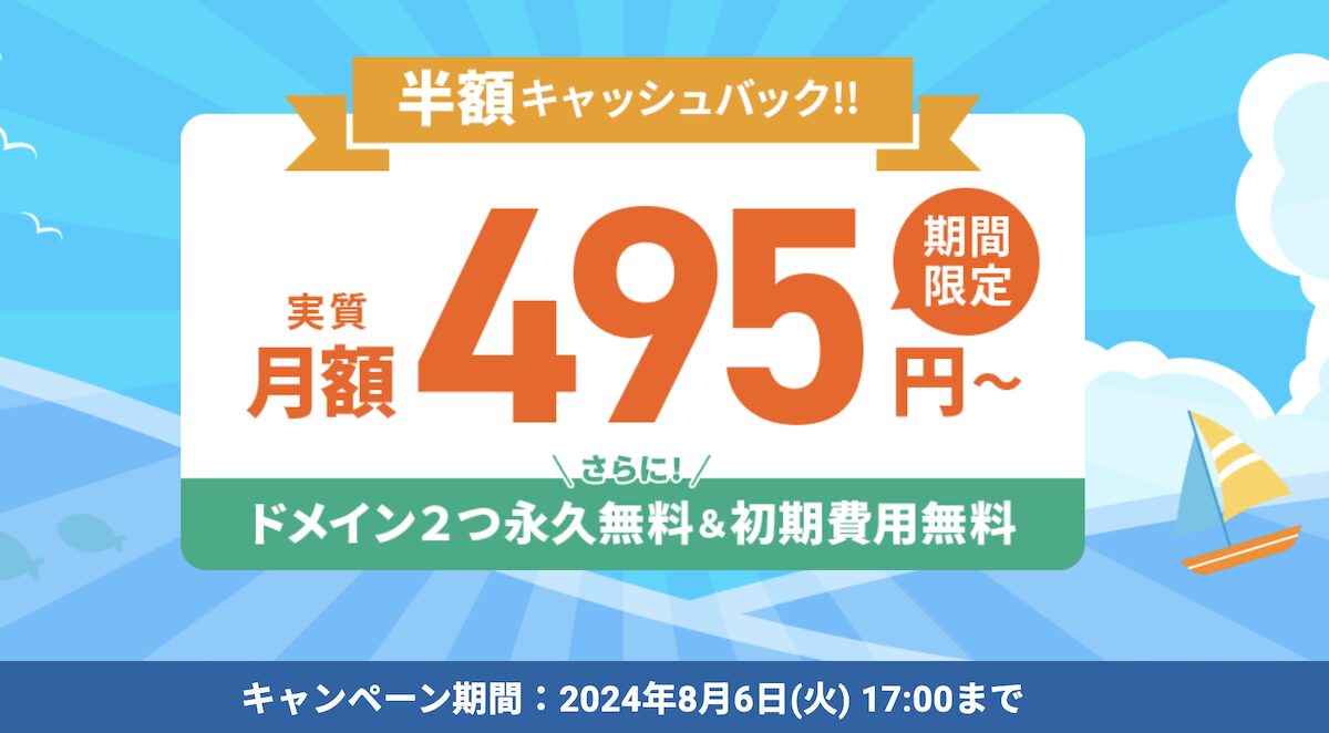 - ドメインが0円で取得できる(※キャンペーン)